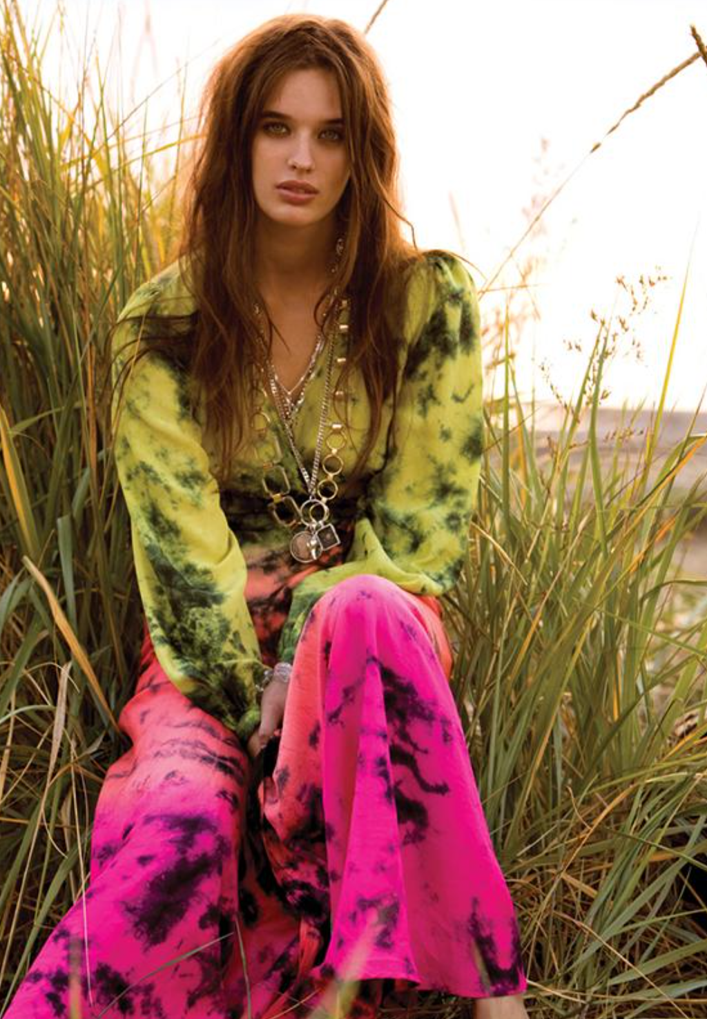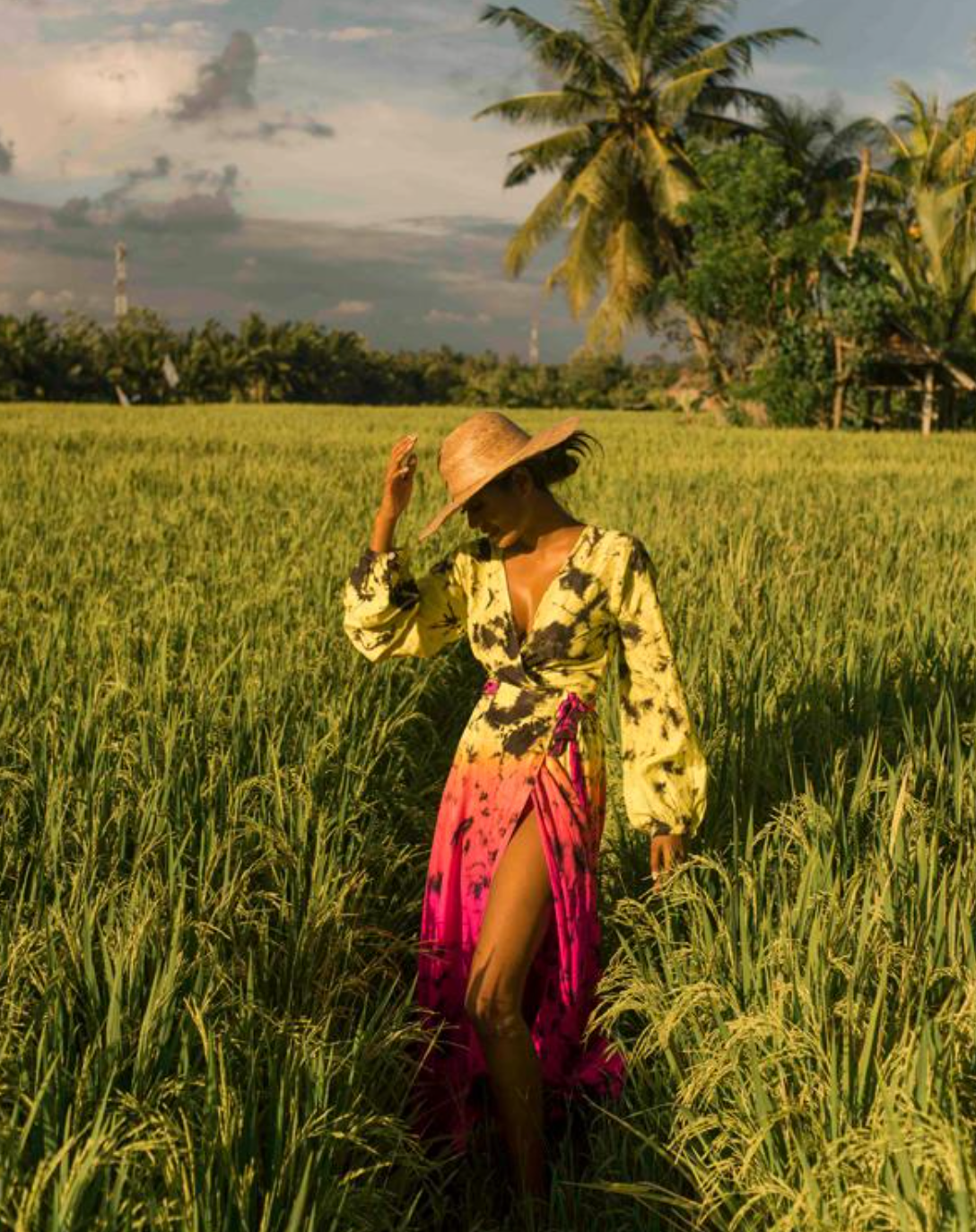 AKSWD1 Silk Long Sleeve Wrap Dress - Astral Neon