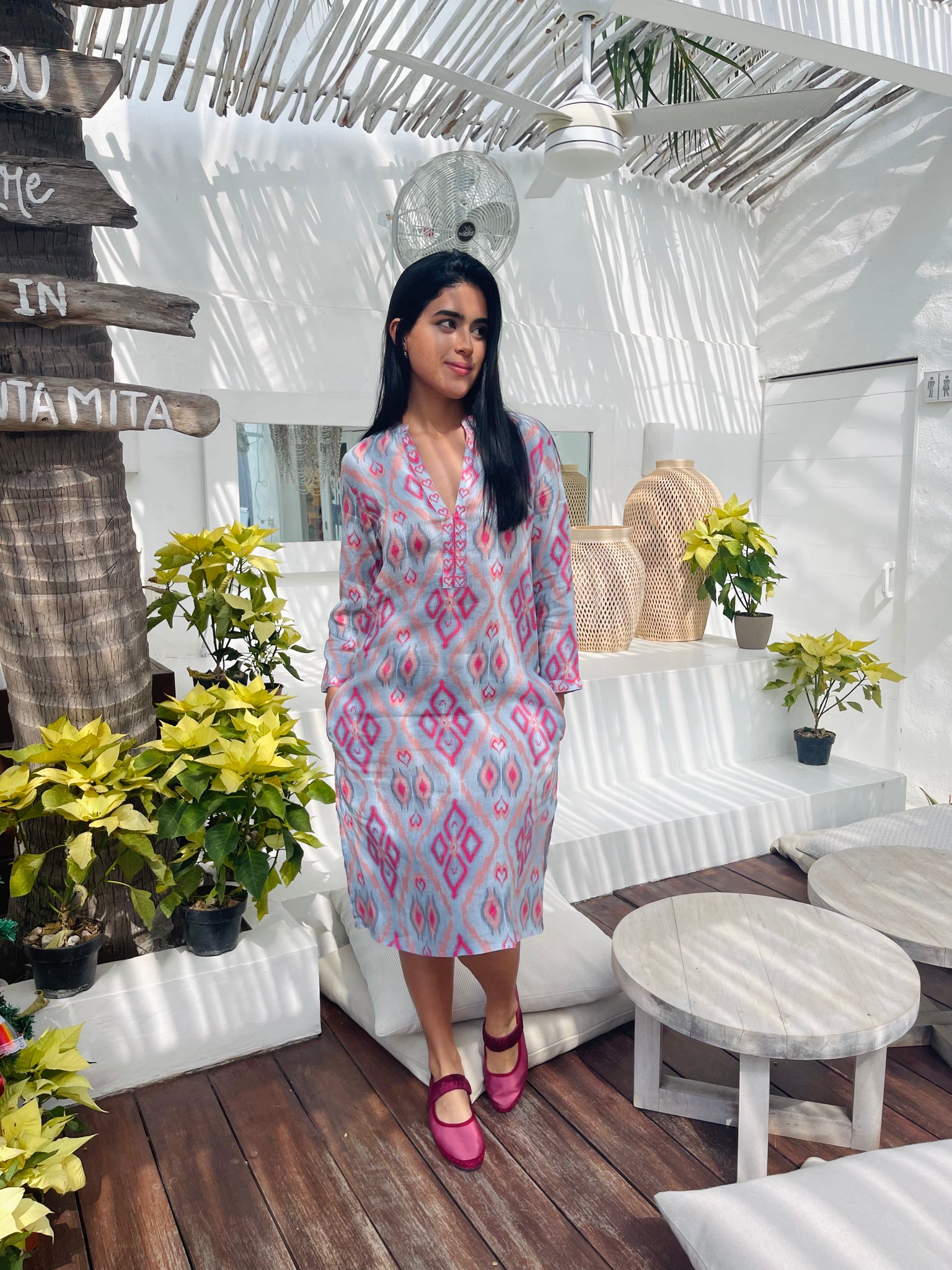 The Sapphire Sorbet Short Kaftan blends vibrant sapphire tones with a light, effortless silhouette. Designed for comfort and style, it features soft movement and refined details that create a fresh, sophisticated look. Perfect for warm-weather days, beach outings, or relaxed chic moments.