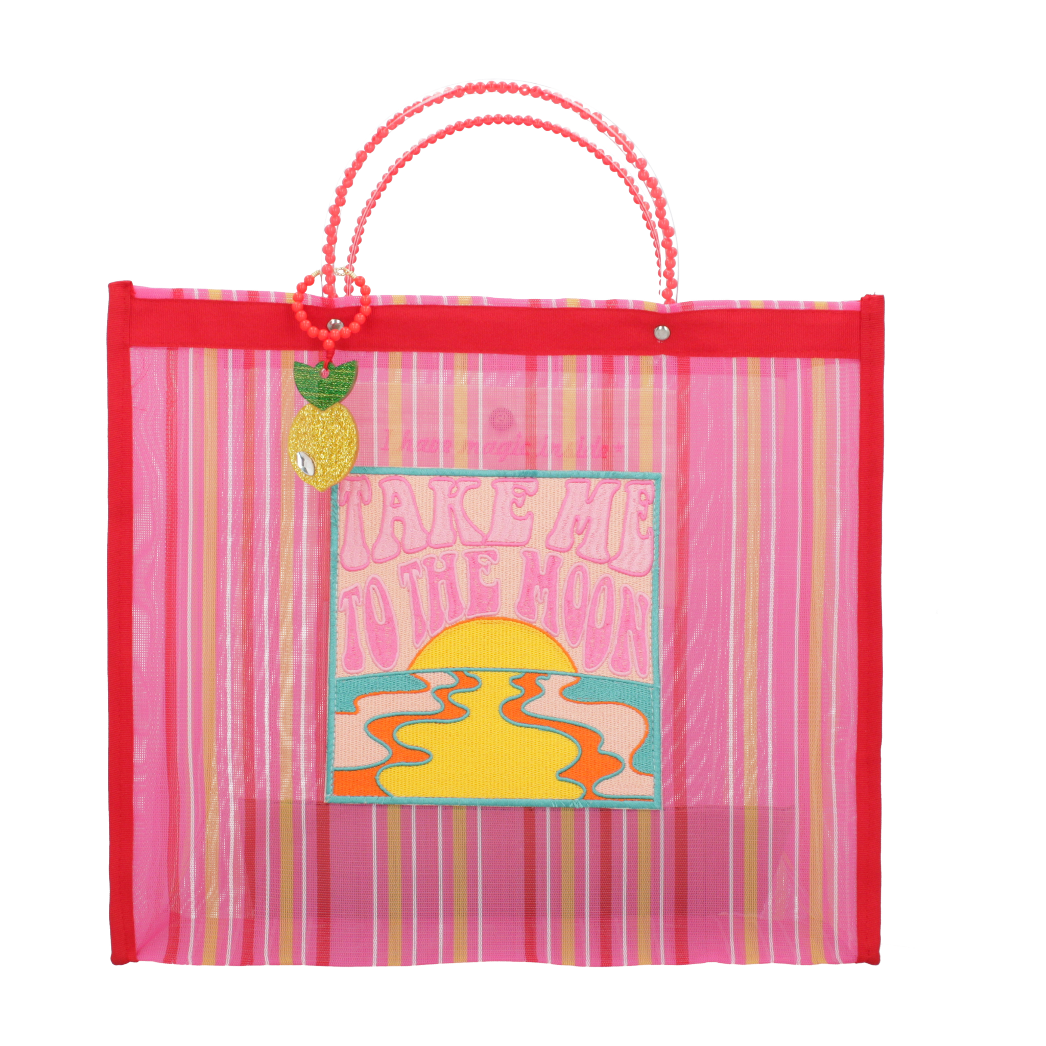Interior linen pocket embroidered with the message "Take me to the Moon" to store your treasures.