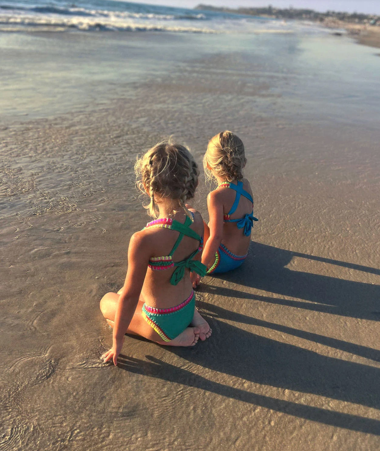 Get your little one set for any seaside adventure in the Sporty Rainbow Embroidered Bikini in a lush shade of Ireland Green. Inspired by the colorful designs of Solange Ferrarini, this two-piece children's swimsuit is sure to make a splash. The exposed rainbow elastic detailing adds a fun and comfortable way to dive in.