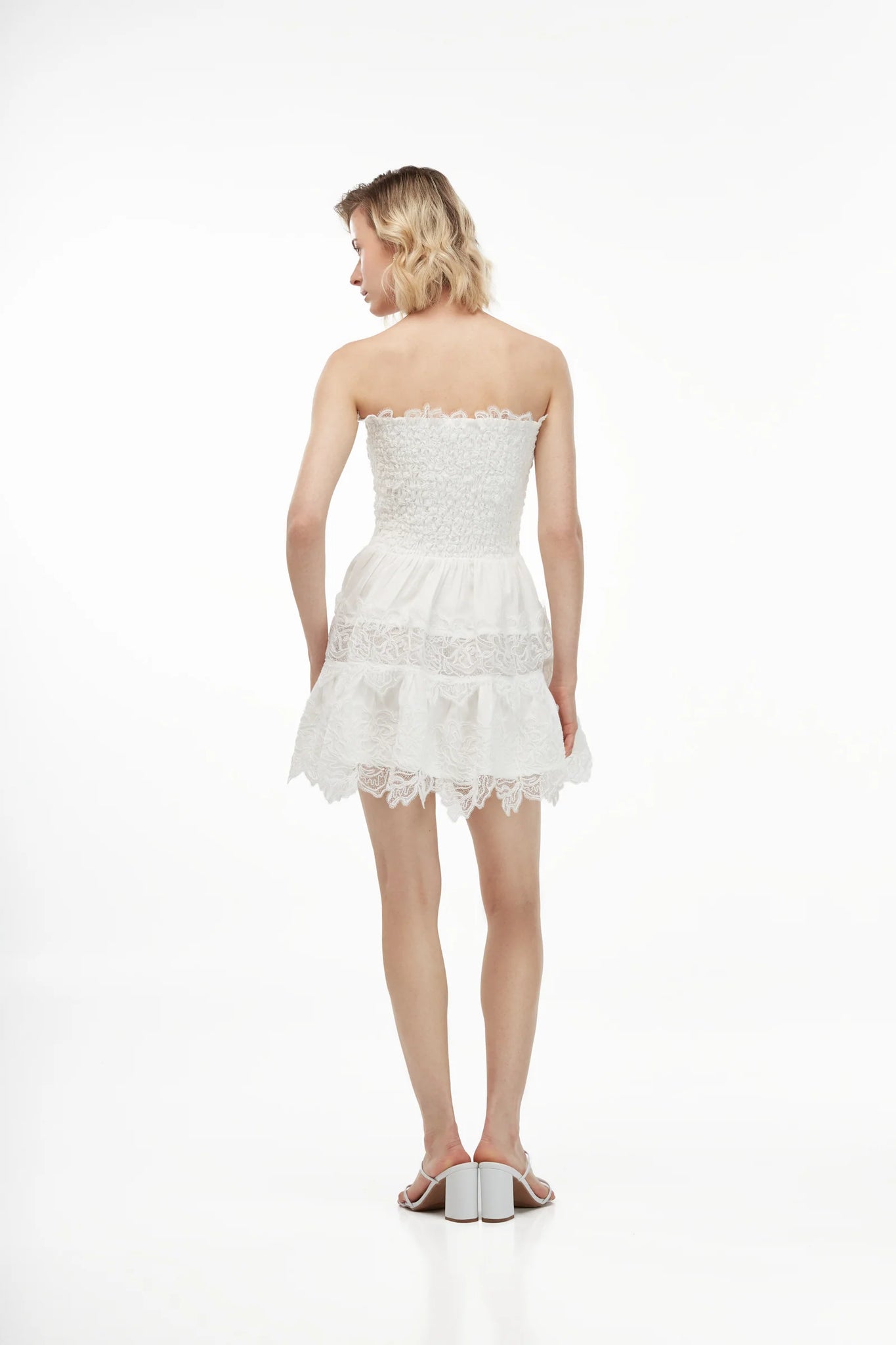 The Brisa Mini Dress, crafted from 100% linen, is an ode to lightness and summer freshness, with a natural charm that invites you to savor sun-drenched days. Its strapless design features a shirred bodice that gently hugs the torso, enhancing the silhouette with comfort and grace, while the layered skirt is adorned with delicate floral lace, adding texture and romance to every movement. Ideal for beach getaways or sunset dinners, this dress pairs perfectly with minimalist sandals or boho-inspired accessories, leaving a trail of fresh, effortless elegance.