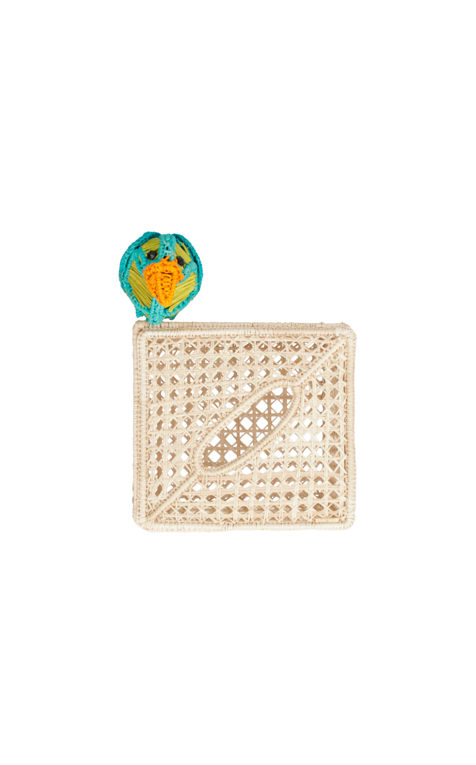 • Care: Raffia is a natural and artisanal material. It is therefore fragile and precious. To maintain the quality of your product over time, we suggest you store it away from light and in a dry place after each use. Spot clean raffia with a very small amount water only as needed, do not use harsh chemical cleaners on stains. Raffia is flammable, use electrical candles and do not use on or near a naked flame.